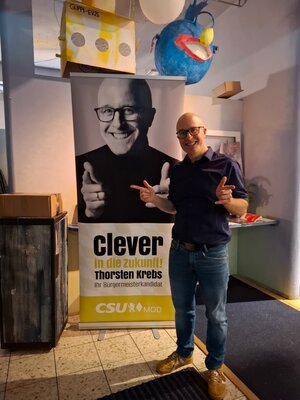 Für good vibrations sorgten die taktsicheren, rhythmisch souveränen und entspannt groovenden Vollblutmusiker Tiny Schmauch, Robert Schilhansl und Florian Mayer -– und auch unser Bürgermeisterkandidat Thorsten Krebs, der als "Bandmitglied ehrenhalber" bei einigen Jazzklassikern wie "Fly me to the Moon", "All of Me", "How High the Moon" oder "Autumn Leaves" am Klavier mitspielte.